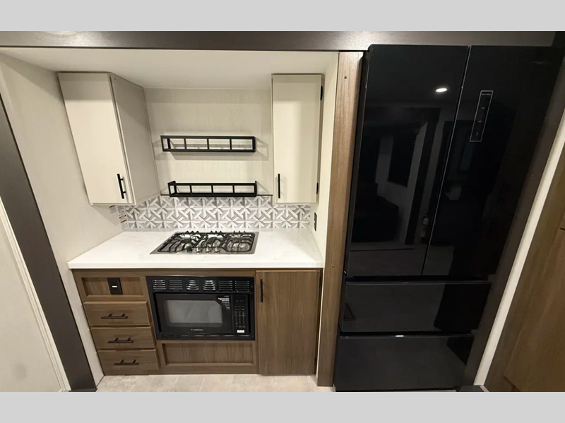 Sleeps 6 Slides 4 Length 39 ft Ext Width 8 ft Ext Height 11 ft 1 in Int Height 6 ft 10 in Hitch Weight 1135 lbs Dry Weight 9753 lbs Cargo Capacity 1582 lbs Fresh Water Capacity 42 gals Grey Water Capacity 102 gals Black Water Capacity 68 gals Furnace BTU 30000 btu Available Beds King, Queen Refrigerator Type Stainless Steel 12V Refrigerator Size 16.2 cu ft Cooktop Burners 3 Number of Awnings 2 Water Heater Type Tankless AC BTU 30000 btu TV Info LR Smart TV Awning Info 10' and 10' Electric with LED Lights Axle Count 2 Washer/Dryer Available Yes Shower Type Radius Electrical Service 50 amp Solar Wattage 200 watts Similar Floorplans
