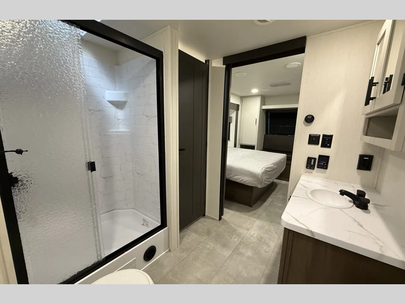 Prime Time LaCrosse 40+ foot travel trailer 44PARK highlights: Front Bathroom ... more about LaCrosse 44PARK